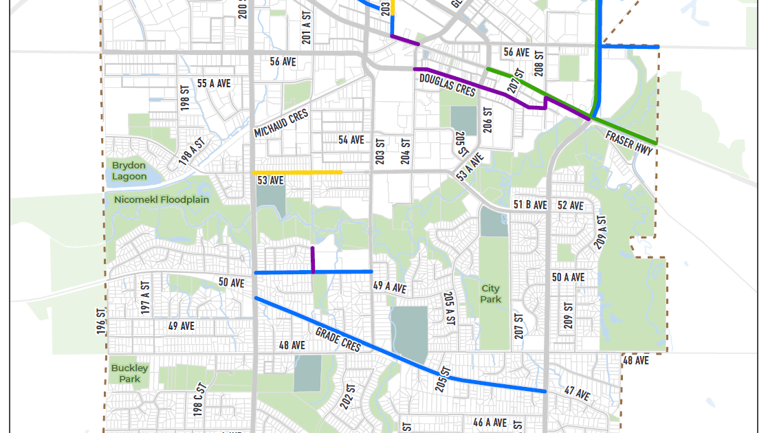 Langley City has been investing in protected cycling infrastructure, including new separated bike lanes on 203 Street, Douglas Crescent, and Glover Road.