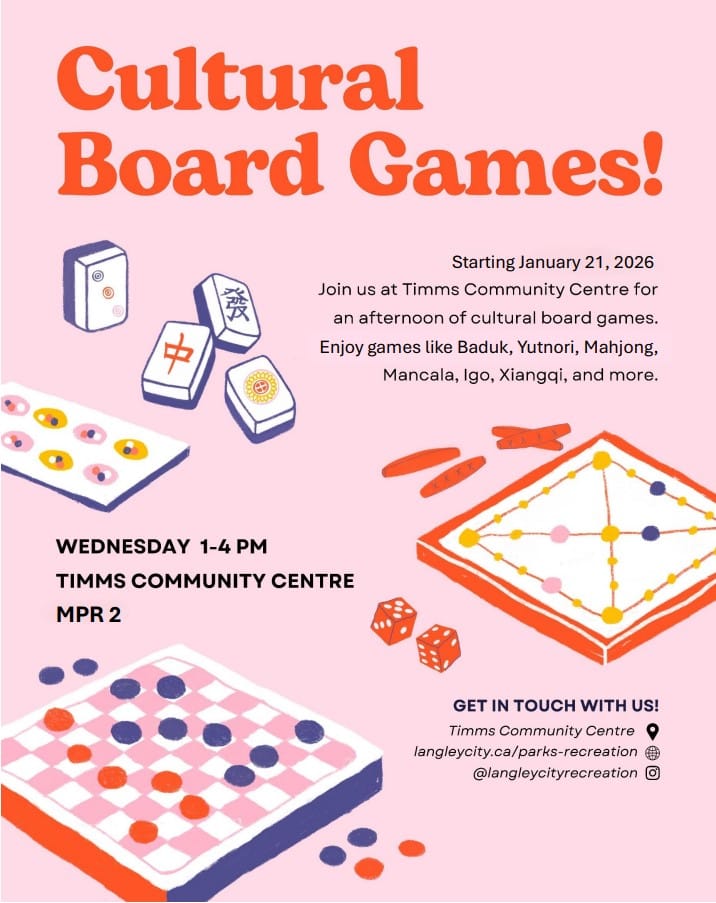 Starting January 21, Langley residents can gather for free board game afternoons every Wednesday at Timms Community Centre.