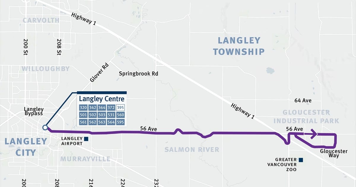 TransLink is proposing a new bus route along 56 Avenue connecting Gloucester Industrial Estates to Langley Centre. Businesses in the area have paid more than $2.5 million a year in TransLink property taxes for nearly two decades without a single bus stop to show for it.