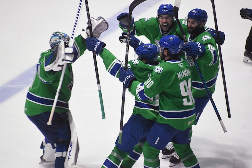 Abbotsford showed resilience throughout the back-and-forth contest, with Guillaume Brisebois and Ty Mueller also finding the net, while goaltender Arturs Silovs made 36 saves for his ninth playoff win.
